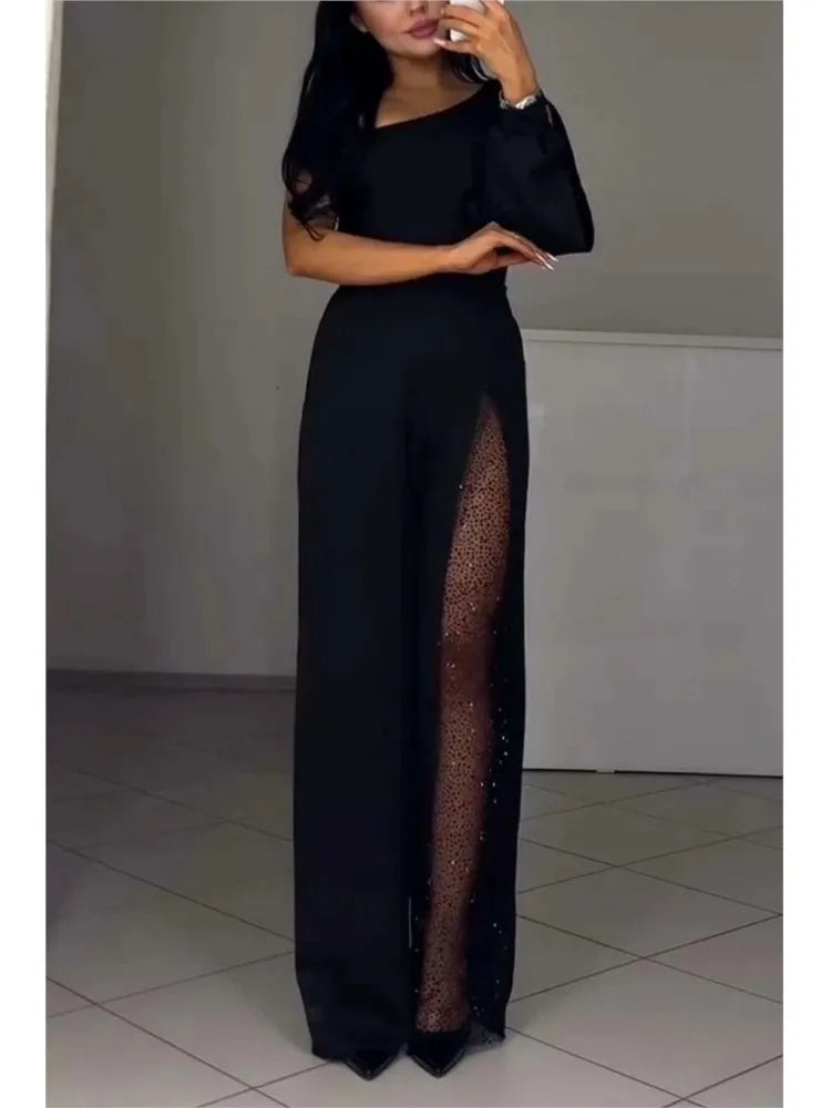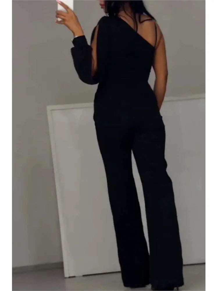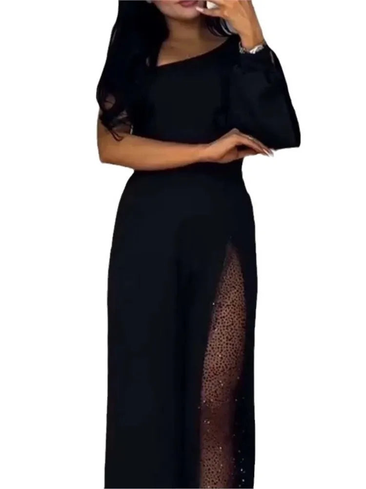 Combine comfort and style with our black party jumpsuit. The off-the-shoulder design and high slit make it perfect for dancing the night away.
