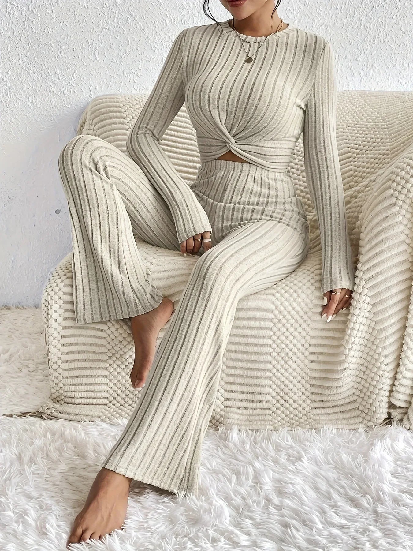 Stay stylish and comfortable with this cozy 2-piece lounge set! Featuring a ribbed knit long-sleeve crop top and matching wide-leg pants, this set is perfect for casual days or lounging at home. Designed for a relaxed yet flattering fit, it’s a must-have for your wardrobe.
