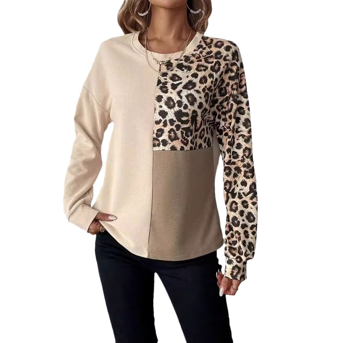Add a unique touch to your style with this personalized long-sleeved leopard print sweater.