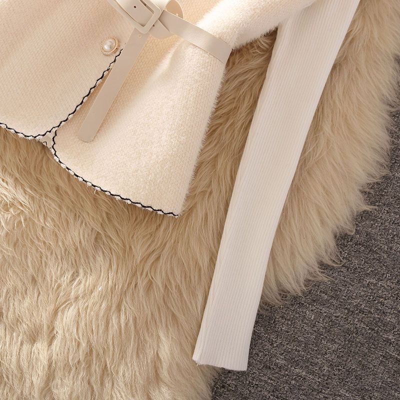 Color: black [one-piece vest], white [one-piece vest], black vest + black sweater [two-piece set], white vest + white sweater [two-piece set], black sweater [one-piece sweater], white sweater [single sweater], apricot sweater [single sweater]
